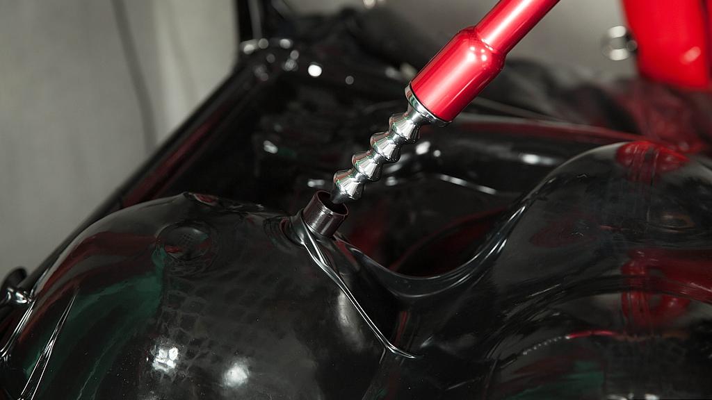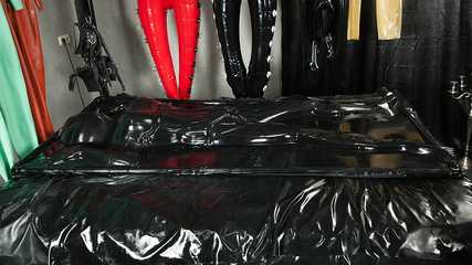 The rubber doll had to spend the last night in the vacuum bed on the order of her mistress. Of course this completely helpless position and the total rubber had extreme consequences for her lust hormones and so she doesn't know anymore where up and down is. But her rubber goddess knows how to help her and makes the perverse doll simply a double pussy.